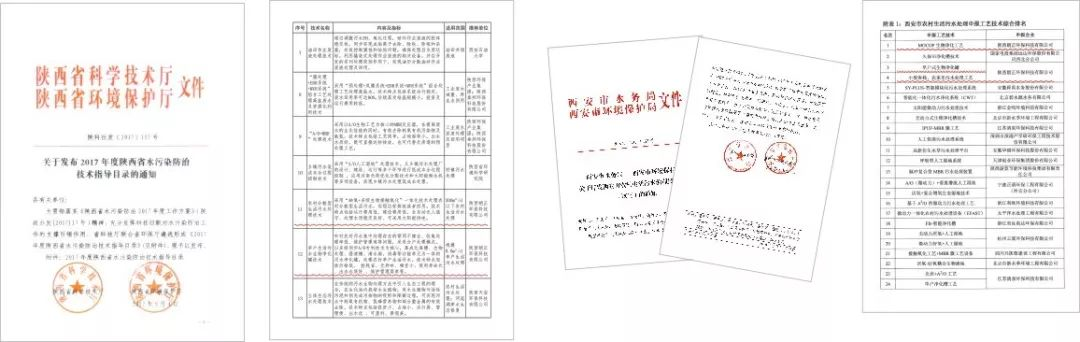 我公司多项工艺入选《陕西省水污染防治技术指导目录》和《西安市农村生活污水治理技术指南》污水处理推荐工艺技术。