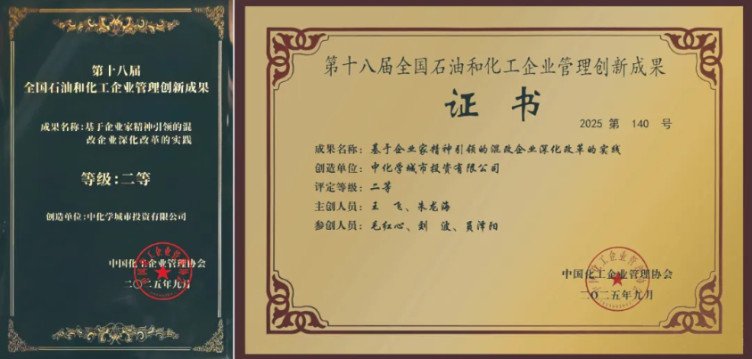 9月25日,2025年全国石油和化工企业管理创新大会在北京召开,会上发布了第十八届全国石油和化工企业管理创新成果。公司申报的《基于企业家精神引领的混改企业深化改革的实践》案例荣获第十八届全国石油和化工企业管理创新成果二等。